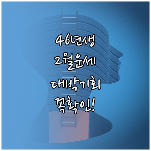 신체 리듬이 바뀌는 시기인 만큼 충분한 수면과 균형 잡힌 식단이 운세의 흐름을 긍정적으로 바꿔줍니다. 특히 2월 말에는 단백질 섭취를 늘려 근력을 유지하는 데 신경 써주시면 다가올 봄을 더욱 활기차게 맞이하실 수 있습니다.